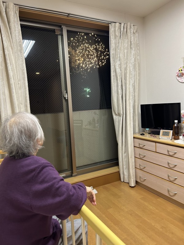 うちの施設は打ち上げ場所のすぐ近くなので数日前から「天気はどうかな?見れるかな?」と楽しみにされていたご利用者様達。