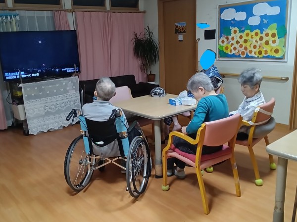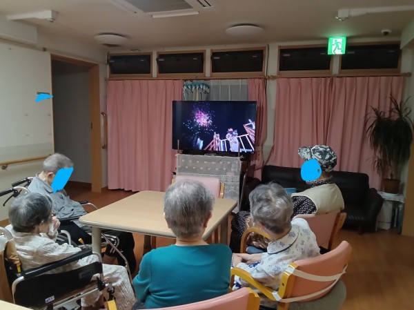 先日隅田川で行われた花火大会がテレビで中継されてましたので、起きていらっしゃるご利用者様にお声掛けさせていただき、みなさまで花火鑑賞会を行いました!