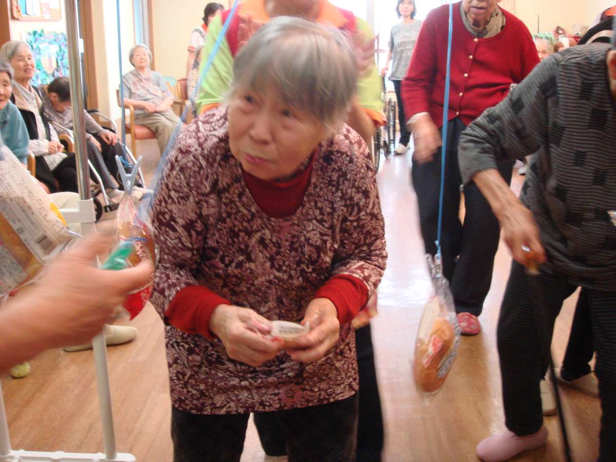 一応今月にあった運動会のことでも書いていこうと思います。( ..)φメモメモ 各階対抗戦でボール送り・風船バレー・パン食い競争をしました。自分の担当の階は1階なので応援しましたが\(゜ロ\) (/ロ゜)/ 結果はすべて3位・・(T_T) 来年こそは1位をとれるようにしていきたいなー・・・・・<(`^´)>最後は順位関係なくパン食い競争 自身で欲しいパンを取っておやつの時間に召し上がりました。