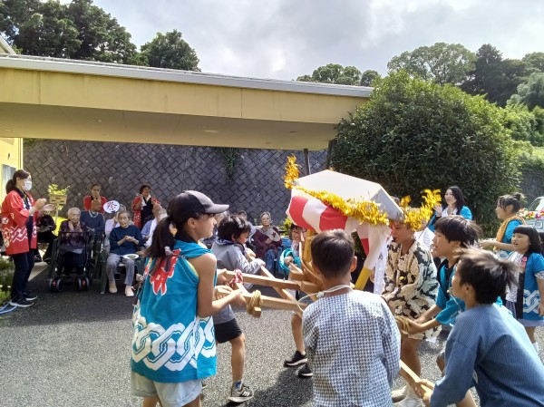 暑い中、子供たちは一所懸命神輿を揺らし、ホームやご入居者の安全や健康を祈念してくれました(*'▽')