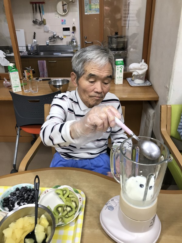 今日は、果物が沢山あったので、ご利用者様とスムージーを作りました✌('ω'✌ )三✌('ω')✌三( ✌'ω')✌