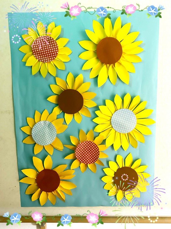 グループホームみんなの家大宮三橋 2階8月壁飾り『暑さに負けず太陽に』