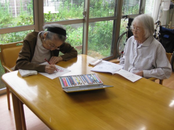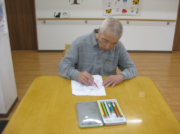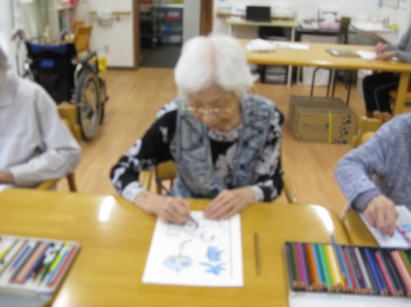 それぞれに楽しまれて塗り絵を行いました。「何色で塗ればいいかな? わからないよ?」と聞かれていました。
