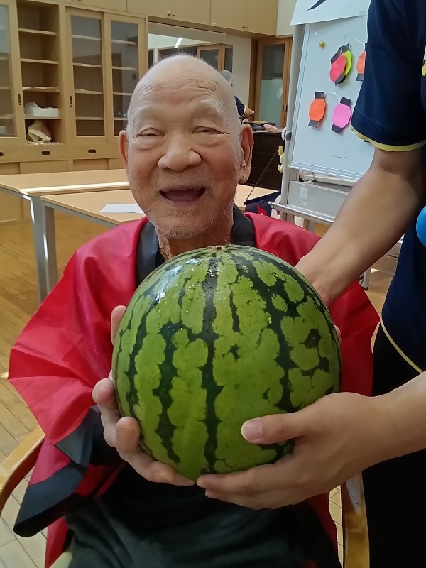 大きなスイカは、皆さんのおやつに提供され