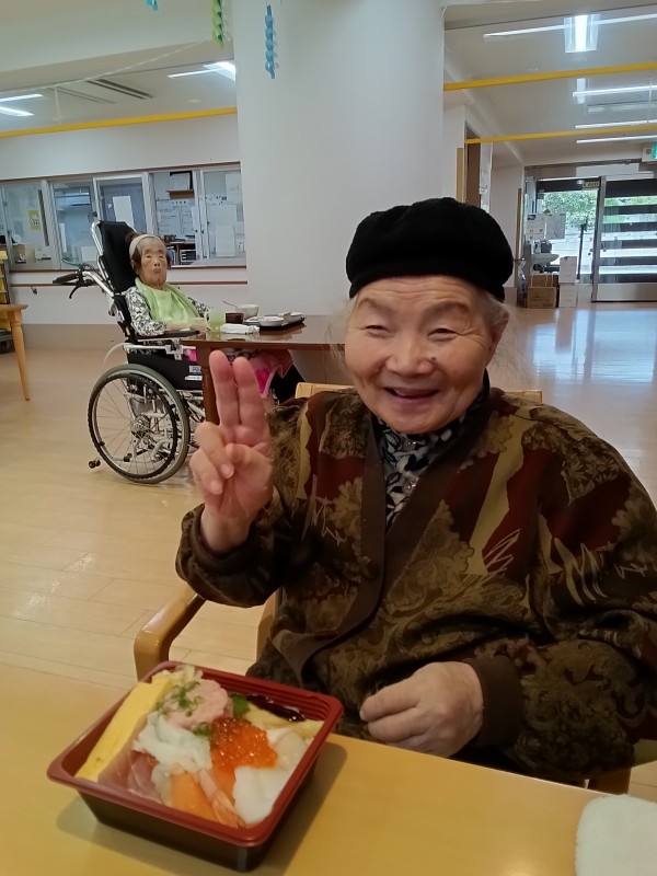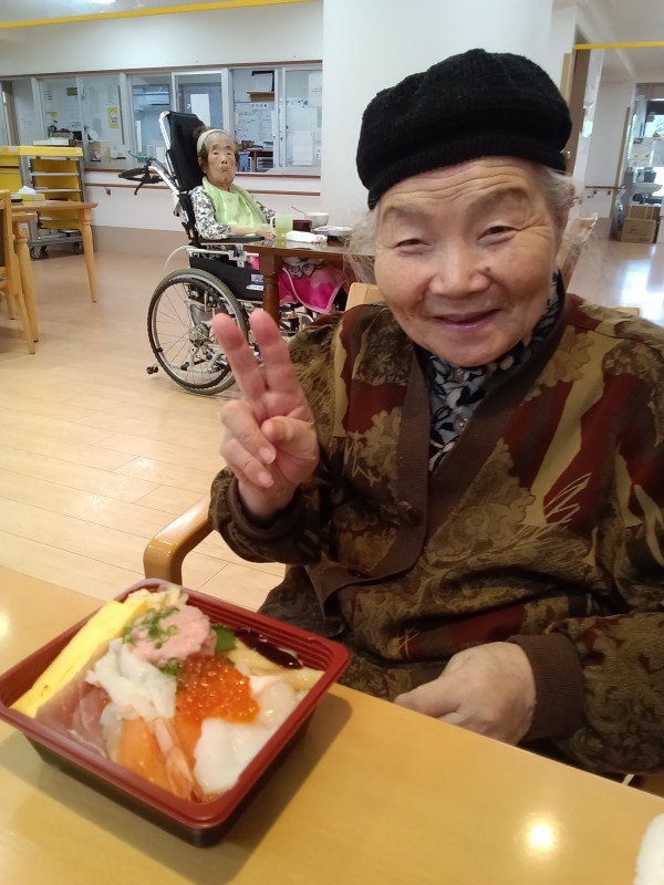 施設では、あまり食べれない特別に特上ちらし寿司が提供されました。