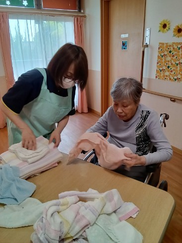 たたんで片付けました