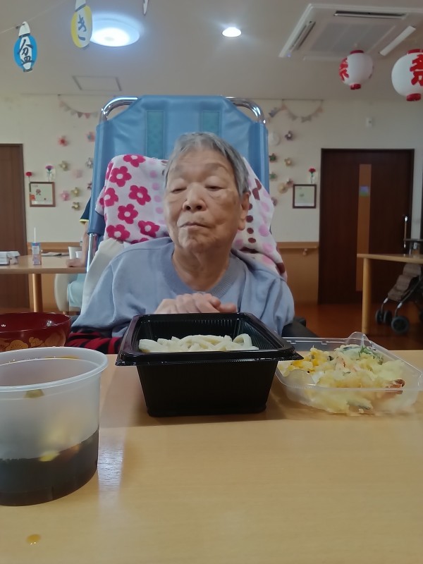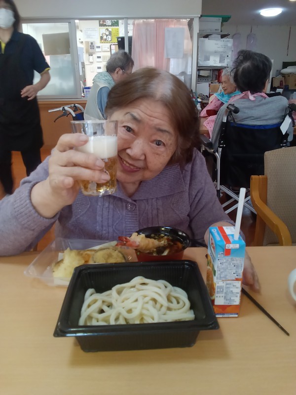 今回のイベントご飯は、当ホームの近くにあるうどん屋さん『久兵衛』のうどんでした。