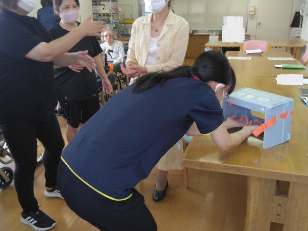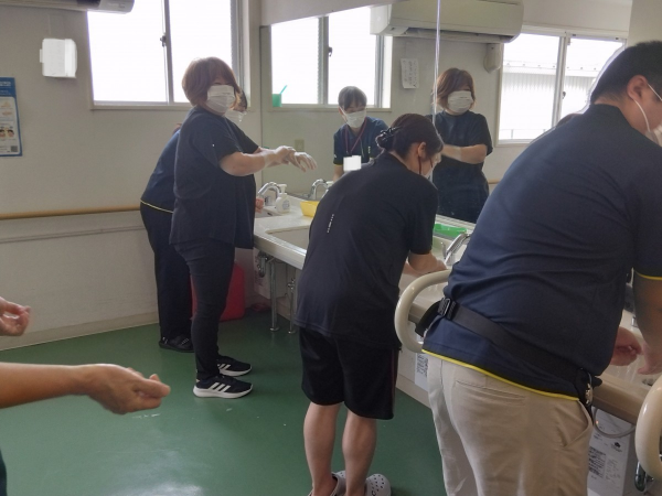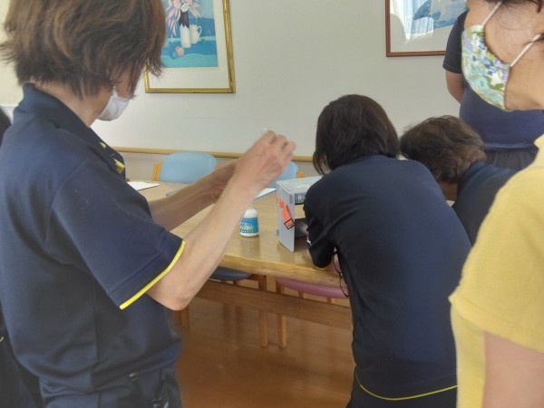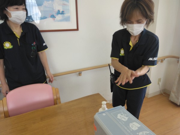 アミカの郷流山ではカンファレンスのさいに様々な研修を行っており本日は手洗いチェッカーを行いました♪