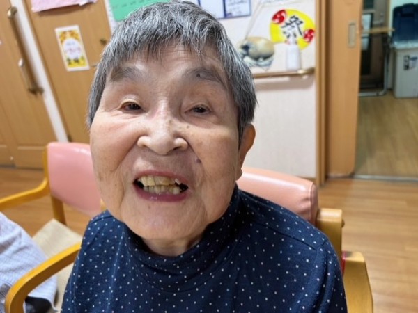 こちらもとある日の夕食後ケアスタッフとの会話中満面の笑みを見せて下さりました。