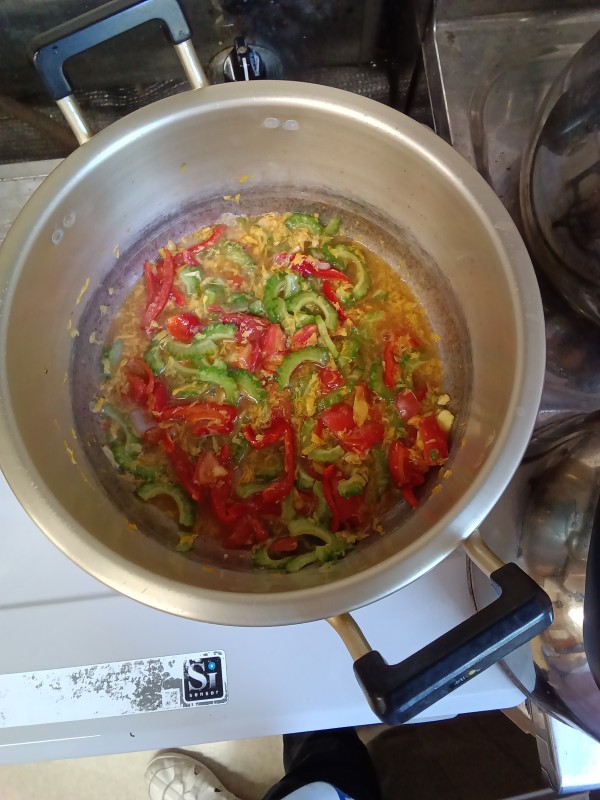 先日、中庭で収穫しました「ゴーヤ」「トマト」を