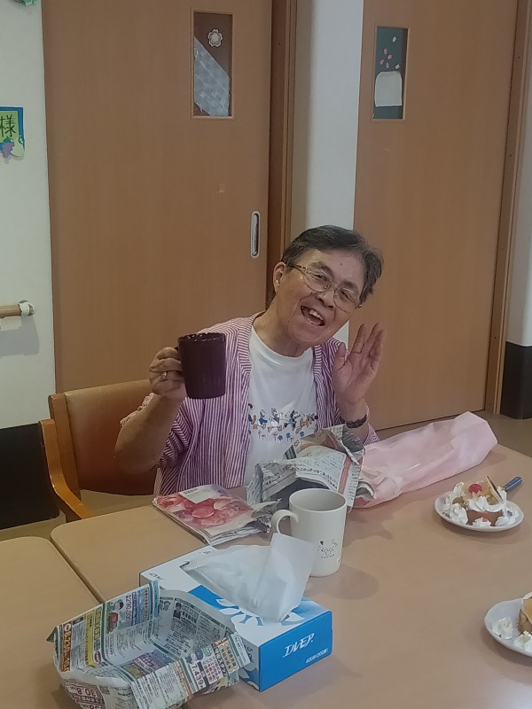 おやつにはロールケーキを使用したケーキをご用意いたしました!皆さん美味しそうに頂かれていました!