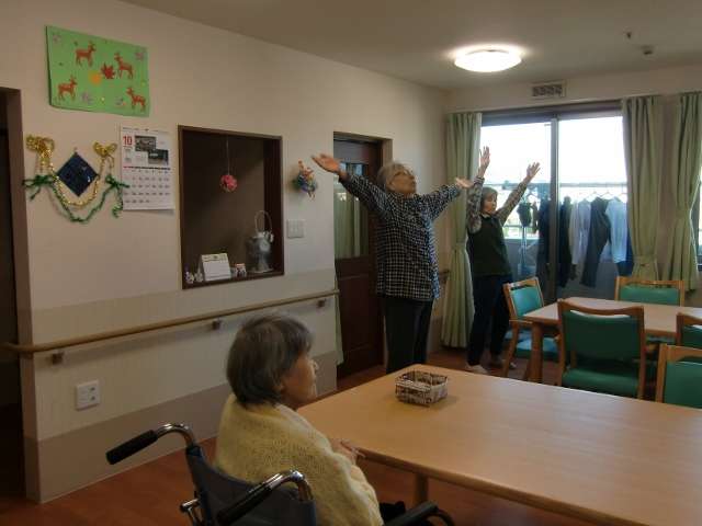 散歩に出かけない日でも、いつもの体操仲間と手足を伸ばし大きく息を吸って、心と体をリフレッシュしましょう!!