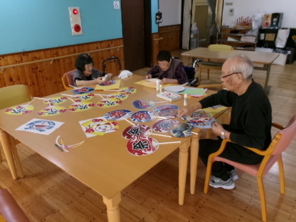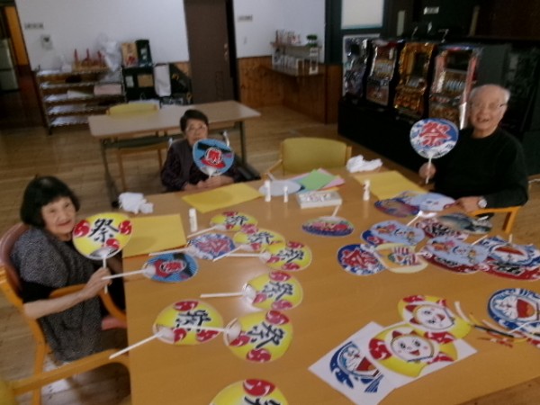 8月22日にリモートで開催される「いきいき盆踊り」に向けて、皆さまで、『うちわ』を作りました(*^▽^*)