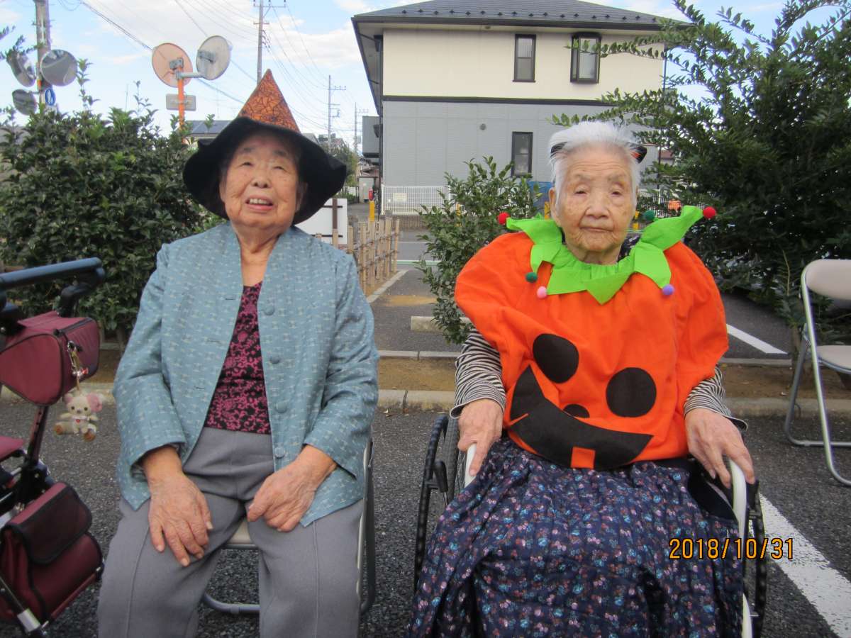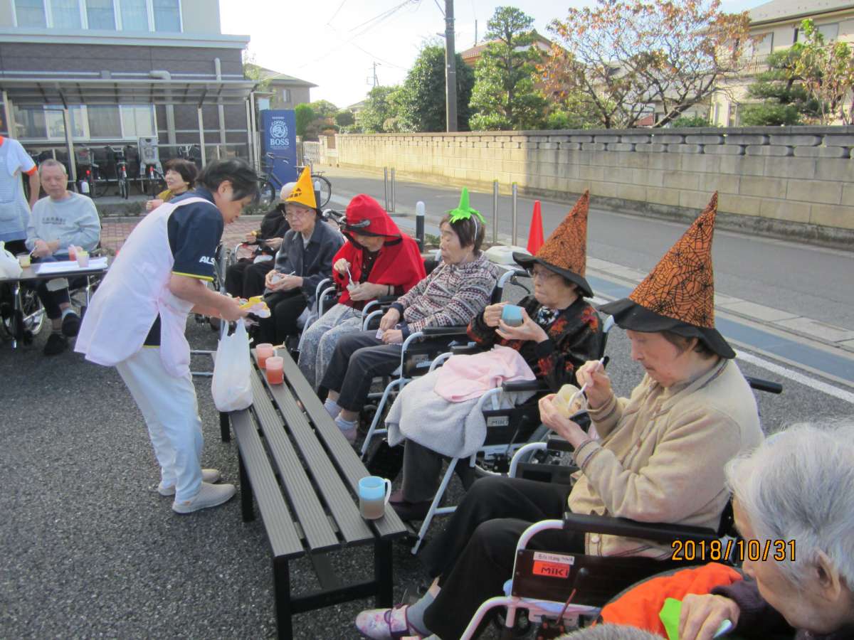 介護付き有料老人ホーム『みんなの家・三橋6丁目』ではハロウィンパーティ♪をしました♪おひさまいっぱいの温かい午後、そとで仮想&おいしいおやつ(^O^) いつもと違ったおやつタイムに楽しい時間を過ごしました♡