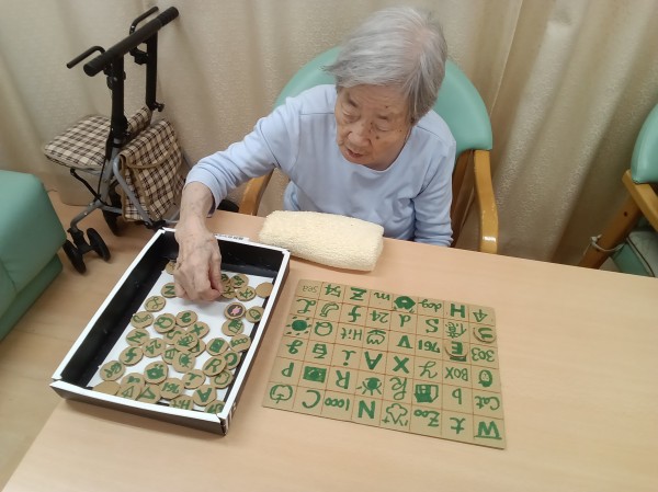 様々ですが、介護職員お手製の漢字・数字合わせも