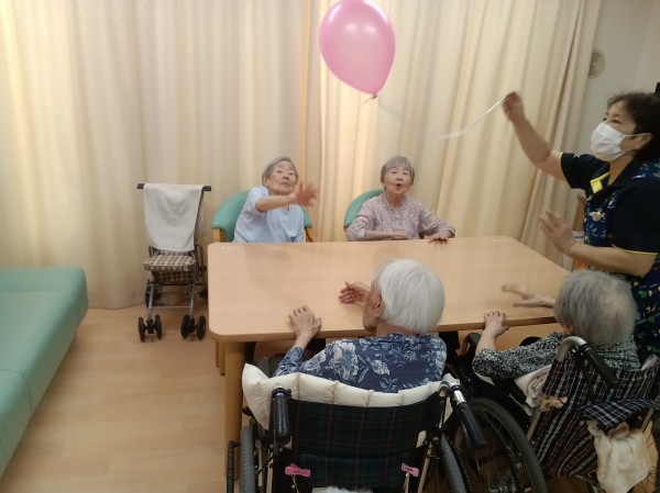 時折、風船バレーのレクリエーションを