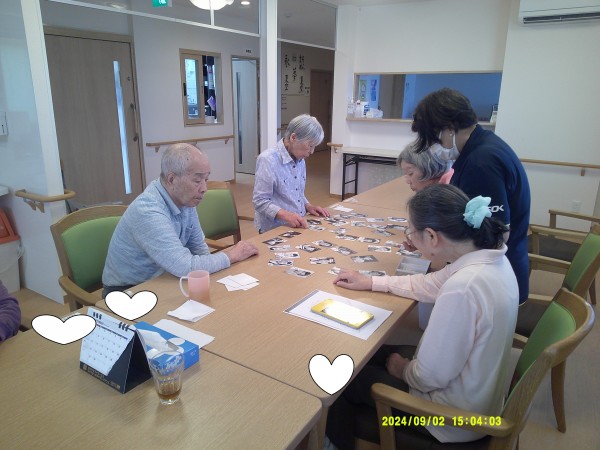 楽しくカルタを入居者様皆様と行っております。(^^♪