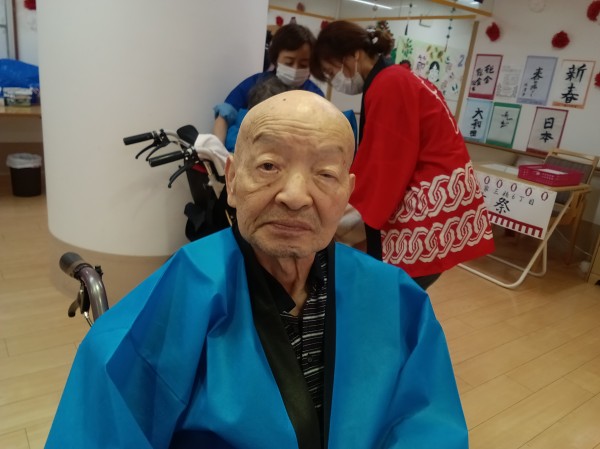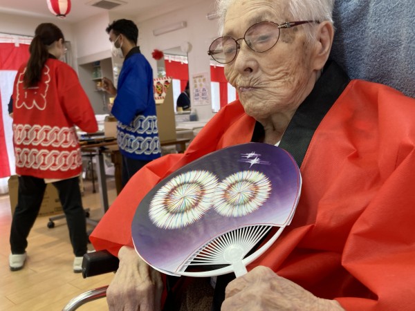 ご利用者様も祭りの雰囲気で夏祭りの法被はっぴを羽織る