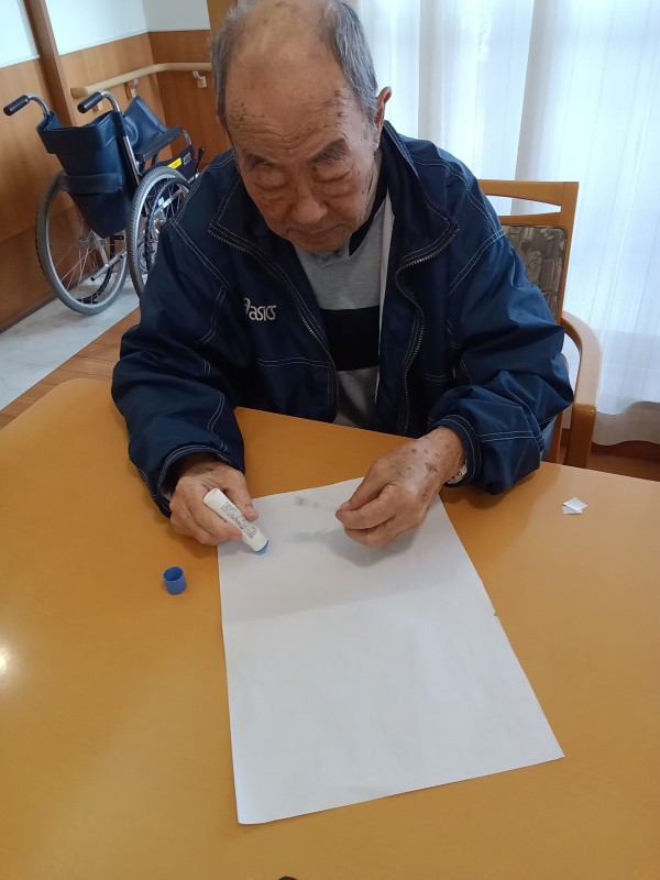 画用紙に一生懸命、考えながら貼ってました(*'ω'*)