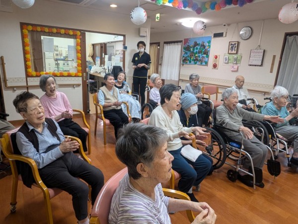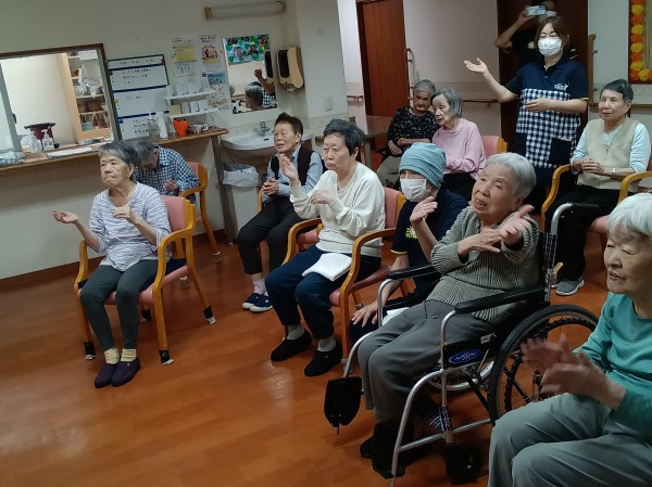 《憧れのハワイ航路》《上を向いて歩こう》《365歩のマーチ》を披露して頂き、憧れのハワイ航路はダンス指導を受け、皆でマネて踊りました!(^^)!