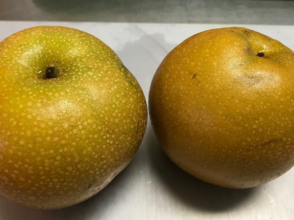 今日のおやつは季節物の梨です。