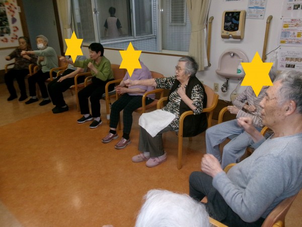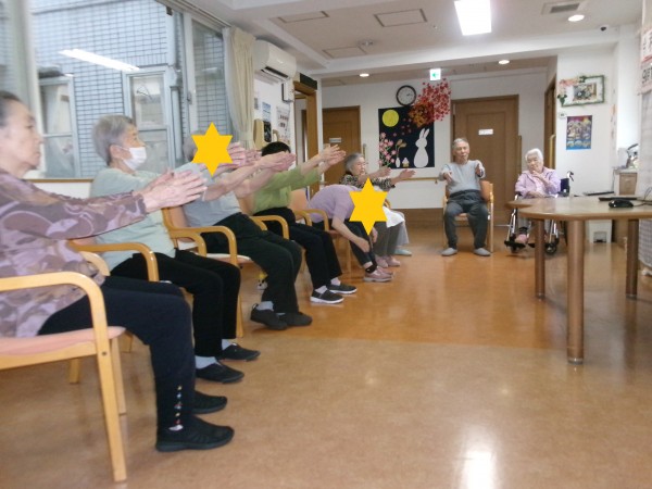 皆で一緒に体操をするのは