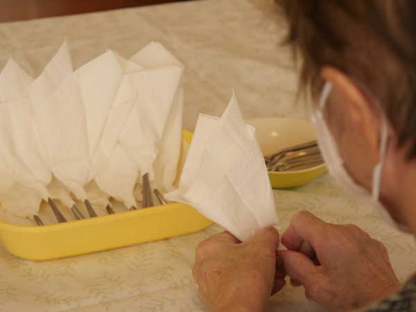 スプーンにペーパーナプキンを巻いてます。