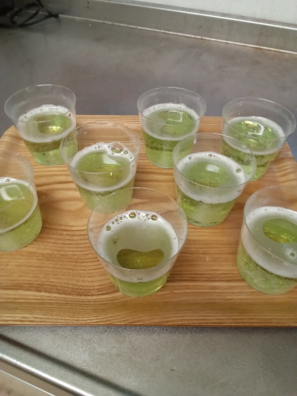 →同量の炭酸水を入れて混ぜて カップに注ぐ。(2回固める)