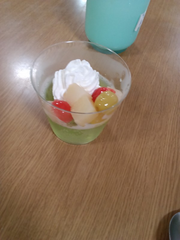懐かしいメロンソーダ風のゼリーに舌鼓。