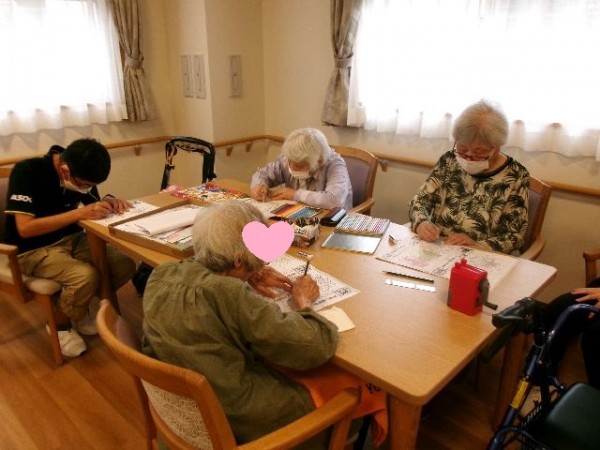 スタッフも一緒に塗り絵をやっていますよ