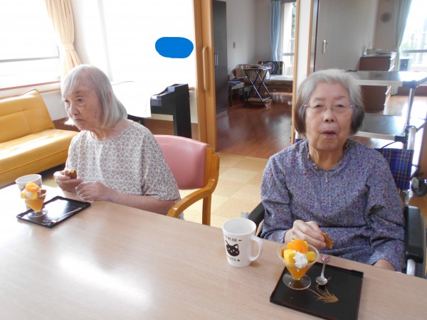 カステラにホイップクリームにみかん、パフェみたいですね♪