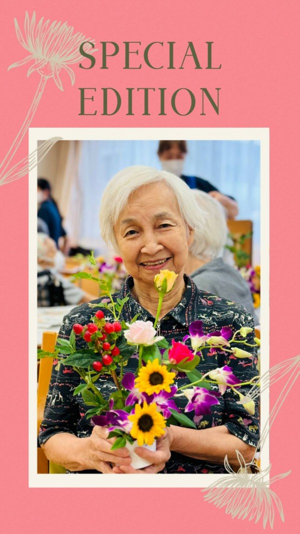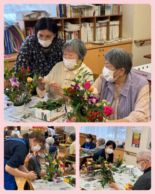 明るい雰囲気の中で、このようにお花を活けることに向き合うことが出来るなんて