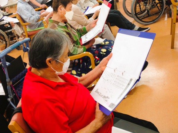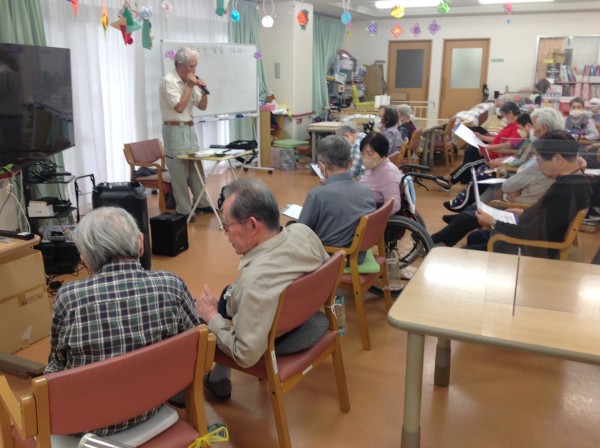 早速ハーモニカ演奏のスタートです♪懐かしのメドレーとともに、歌える人は歌っていきました♪