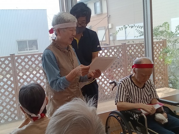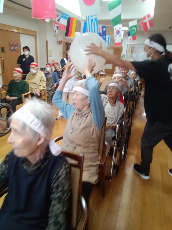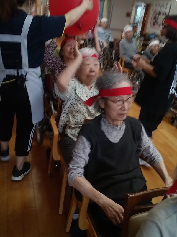 今年のプログラムは『大玉送り』『スプーンリレー』『玉入れ』、職員競技で『キャタピラリレー』でした。