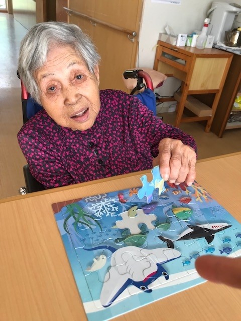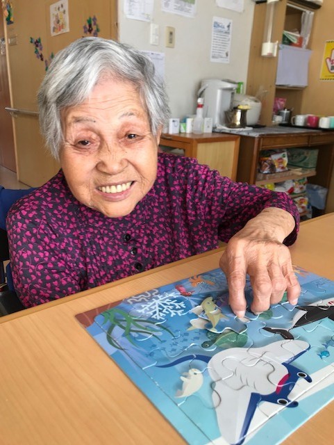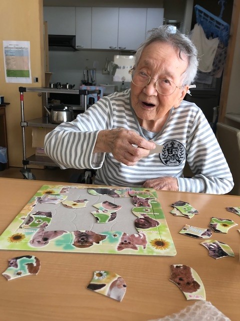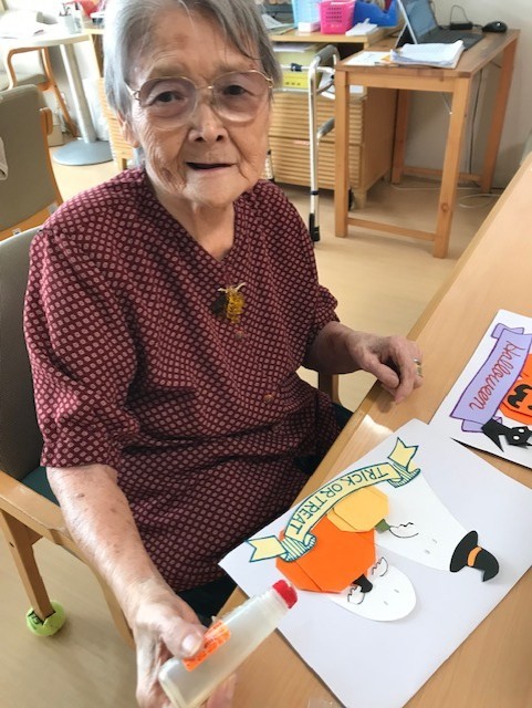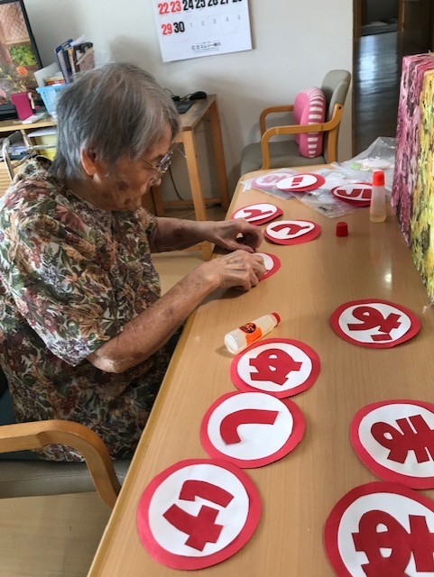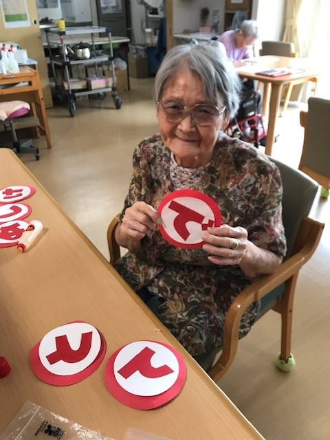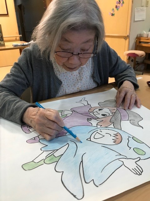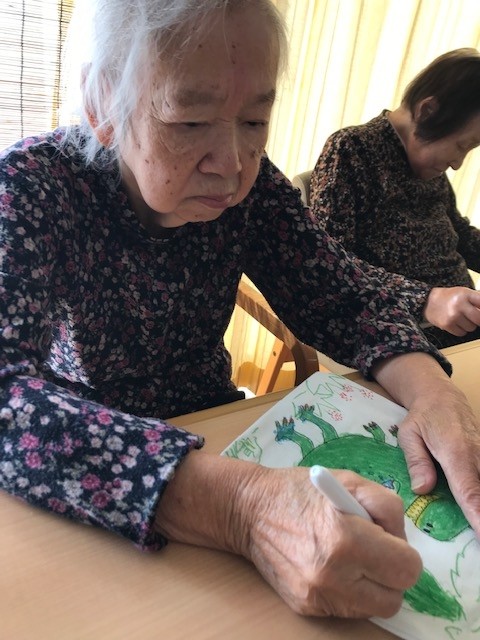 バッグに塗っている入居者様は、「難しいね」と話されながら、