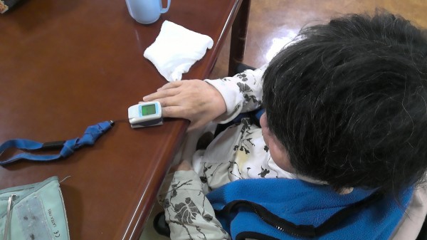 パルスオキシメーターで測定している「SPO2」とは、皮膚の上から動脈の中の酸素の飽和度のことで、動脈血にどれくらいの割合で酸素が結合しているかを測定しています。