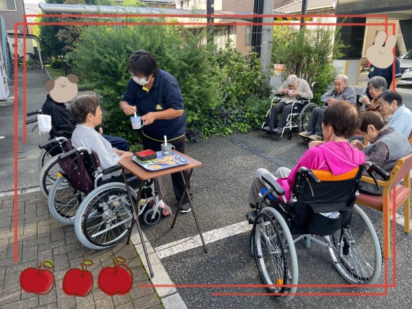 秋晴れの良き日!2階はお外でおやつを食べました。!(*´ω`*)