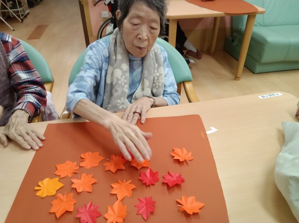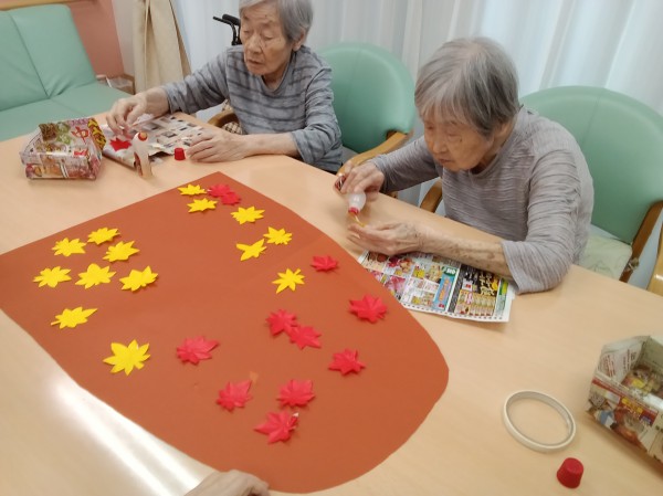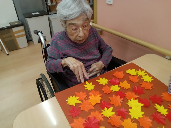 紅葉の葉を一つ一つ丁寧に貼付いただきました。