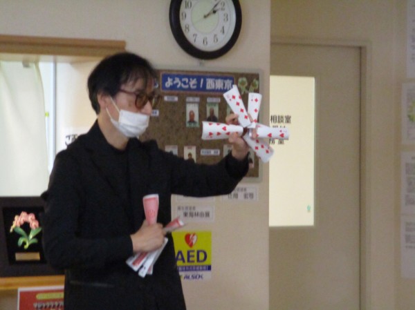 最初はトランプの手品です!どうしていっぱいトランプが出て来るのか不思議???