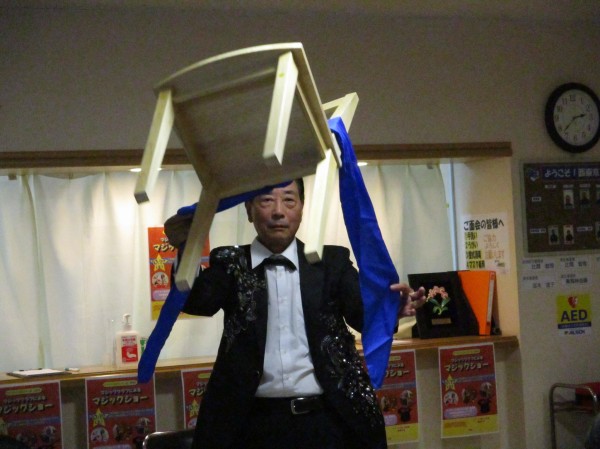 今度は椅子を使ったイリュージョン!何と不思議、椅子が空中遊泳しました???