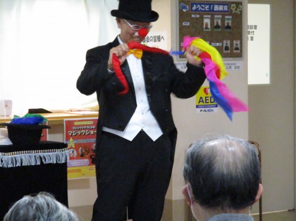 ステッキが紐に成ったり、大きなハンカチに成ったり、ハトが出てきたりとスピード感溢れるマジックでした!