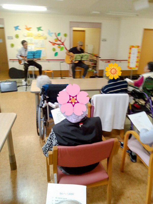皆さんで素敵なギター演奏に合わせて沢山の曲を歌って。