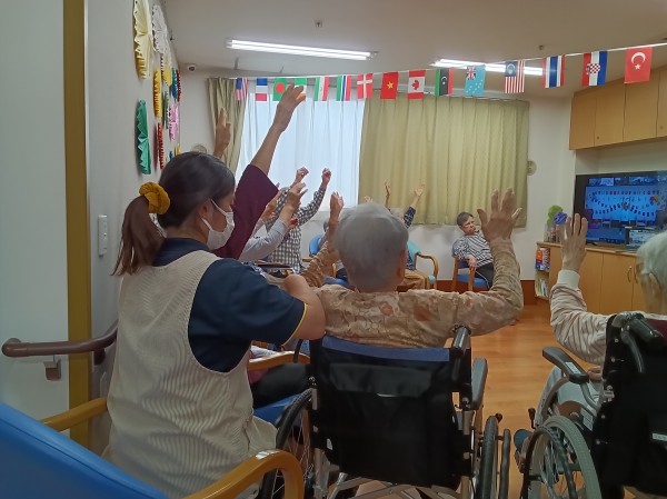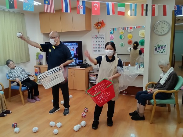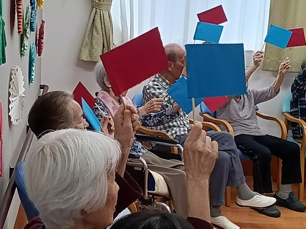 風船バレー(何回続くか)、玉入れ、旗揚げ、
