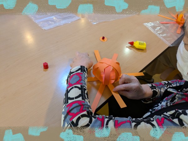 細長くした画用紙を縦・横・斜め・・・と放射線状に重ねて・・・