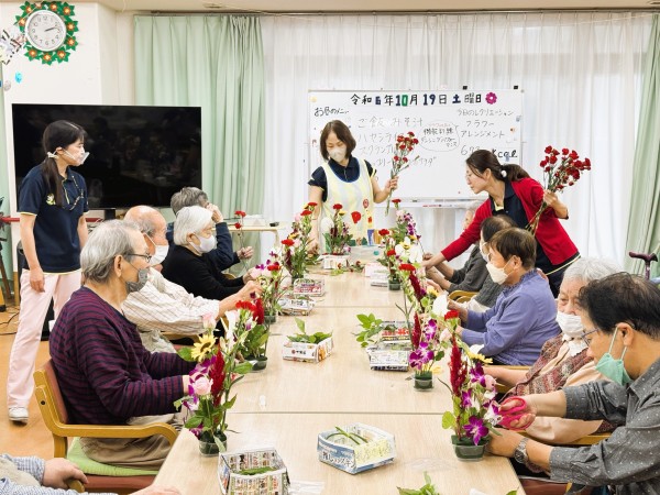 本日ご紹介するのは、18日(金曜)に行われた「フラワーアレンジメント」と「機能訓練ダンシングパフォーマンス」の2つ同時になりますー!