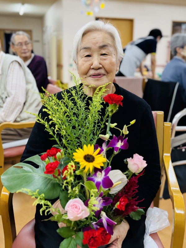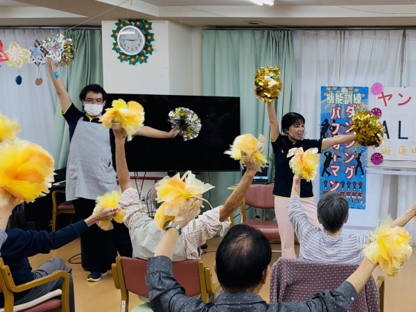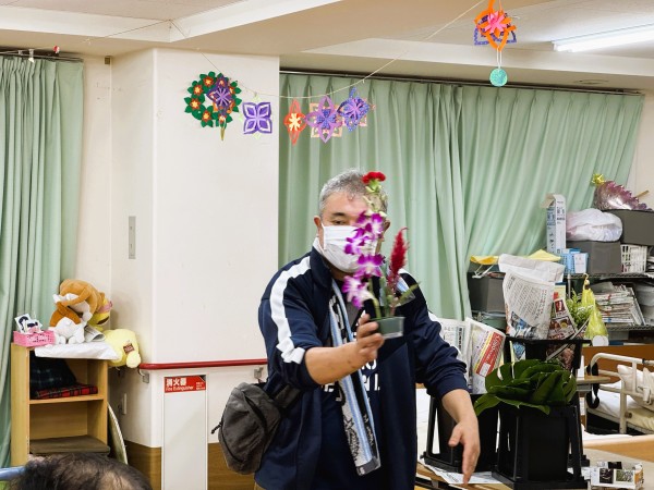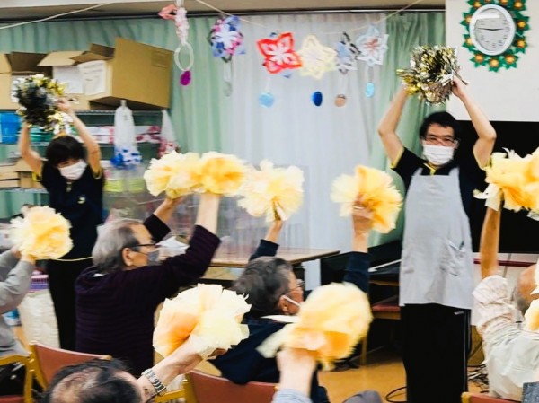 こちら、機能訓練ダンシングパフォーマンスは、フラワーアレンジメント後にスタッフ全員で行いました