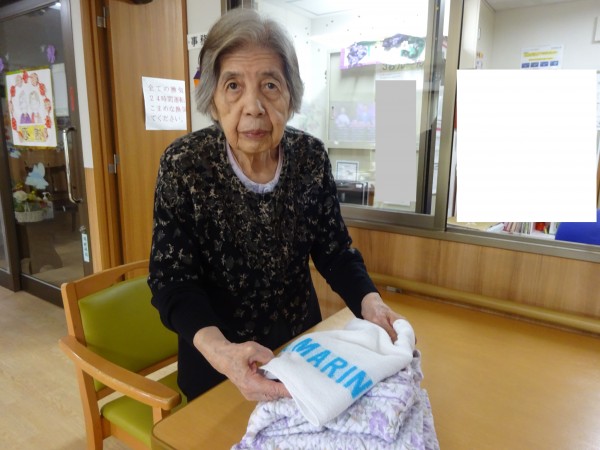 毎日たくさんのお手伝い、本当に助かっています。洋服やパジャマをたたむ時は、今やスタッフより丁寧に、