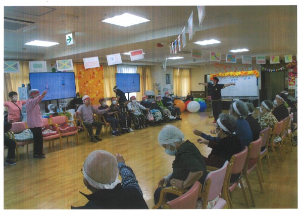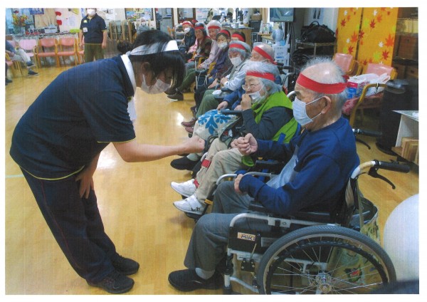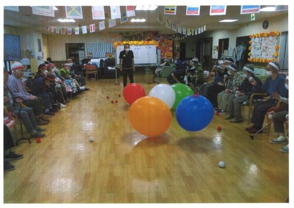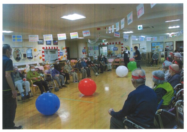 本日午後のレクリエーションは【ミニ運動会】紅組、白組に分かれてチーム対抗の運動会です。