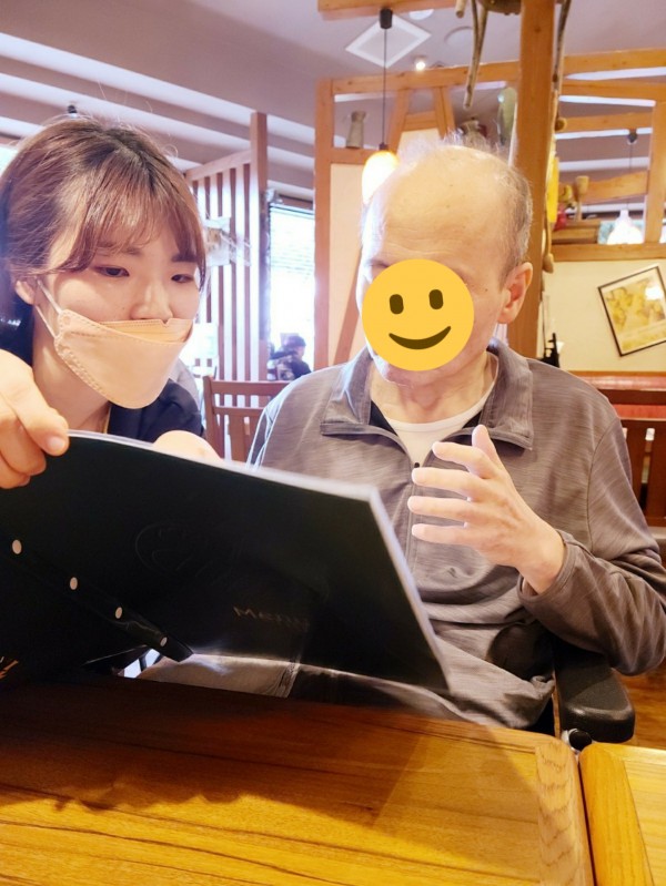 M様もH枝様も職員からメニューの説明を聞いて、真剣に選んでいます。