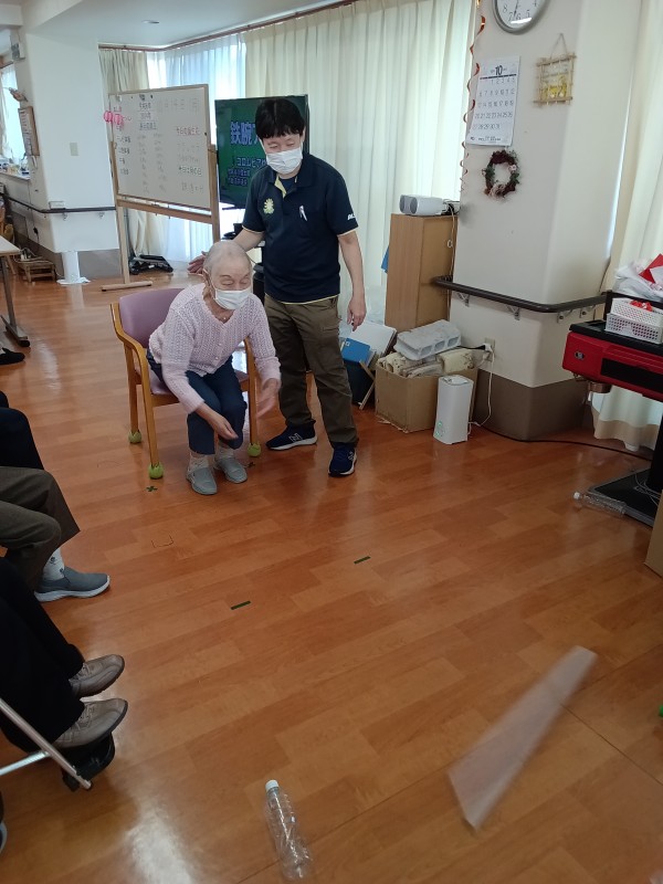 1人2回投げます。今日のペットボトルの本数は、6本でしました。